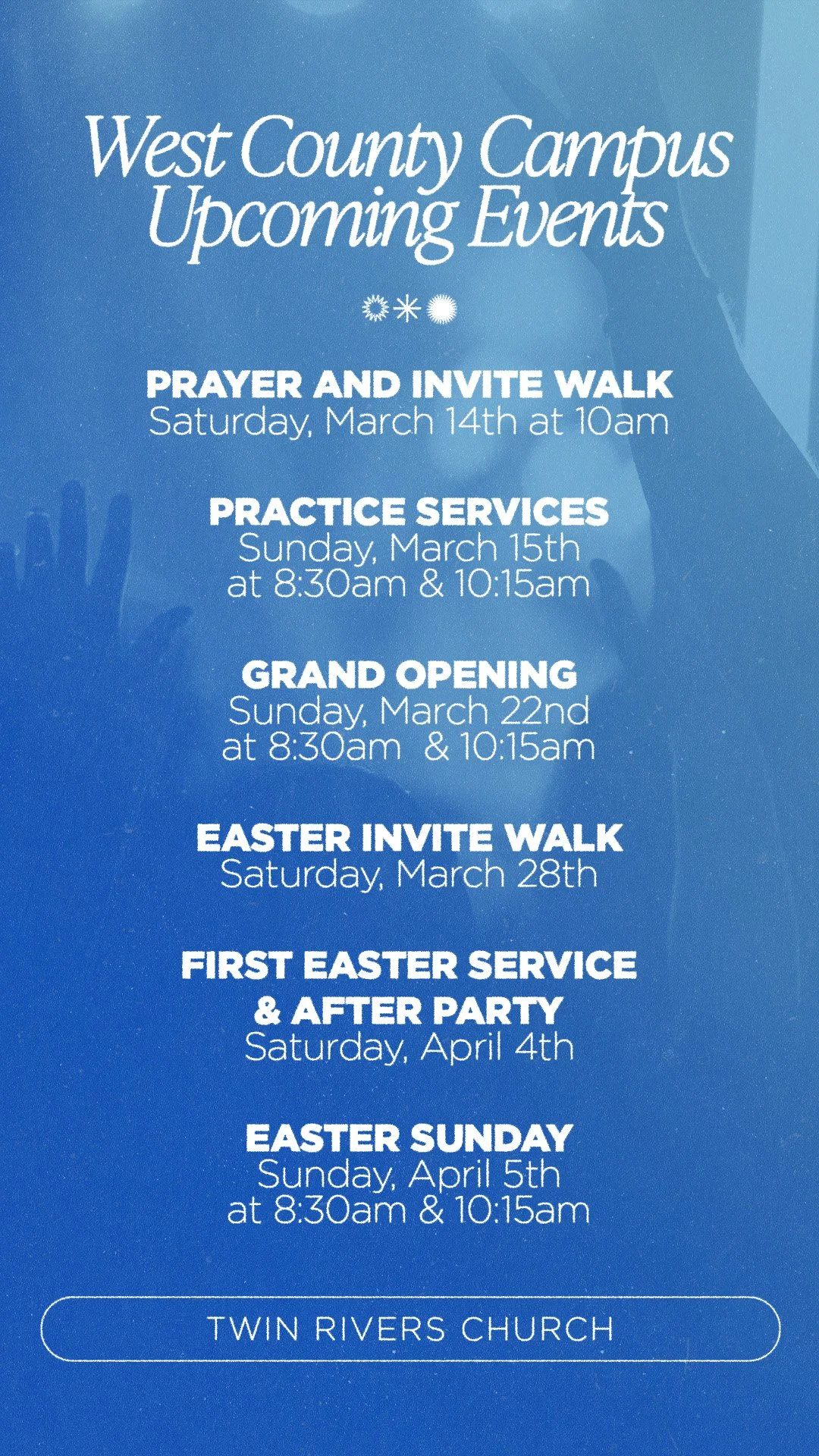 We’ve created digital invites for you to make it easy to invite your friends and family to join you at our West County Campus!